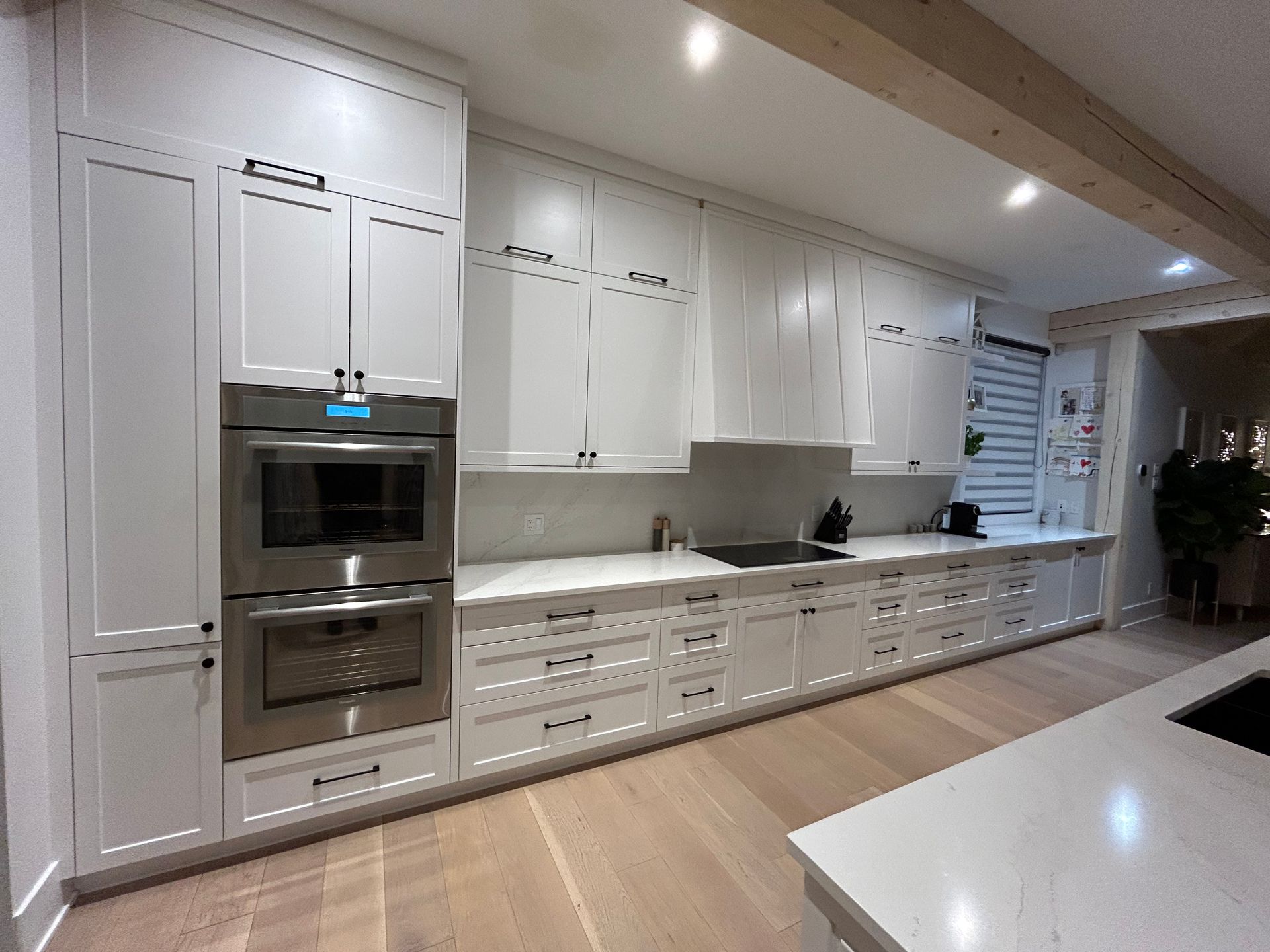 Nous récupérons vos portes et façades de tiroirs. La peinture au pistolet est réalisée dans notre atelier à Granby. Cette technique professionnelle assure une finition lisse et durable, impossible à obtenir au pinceau ou au rouleau.